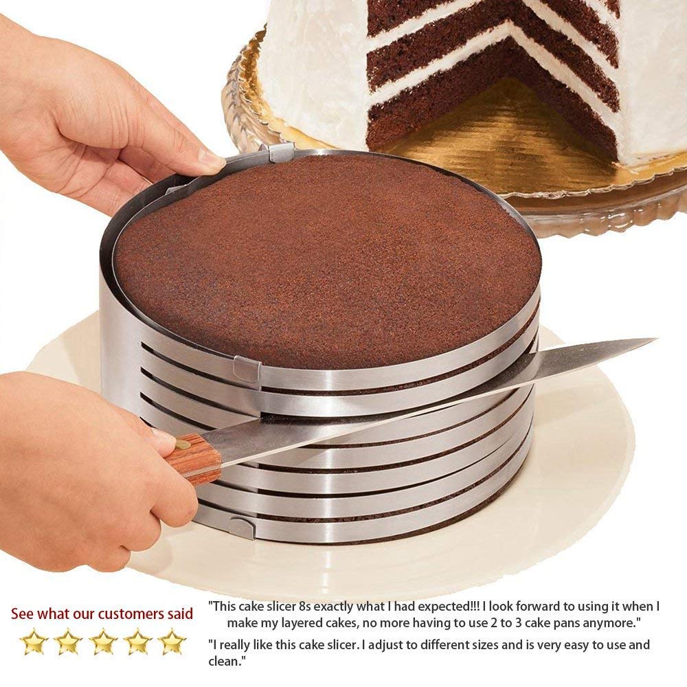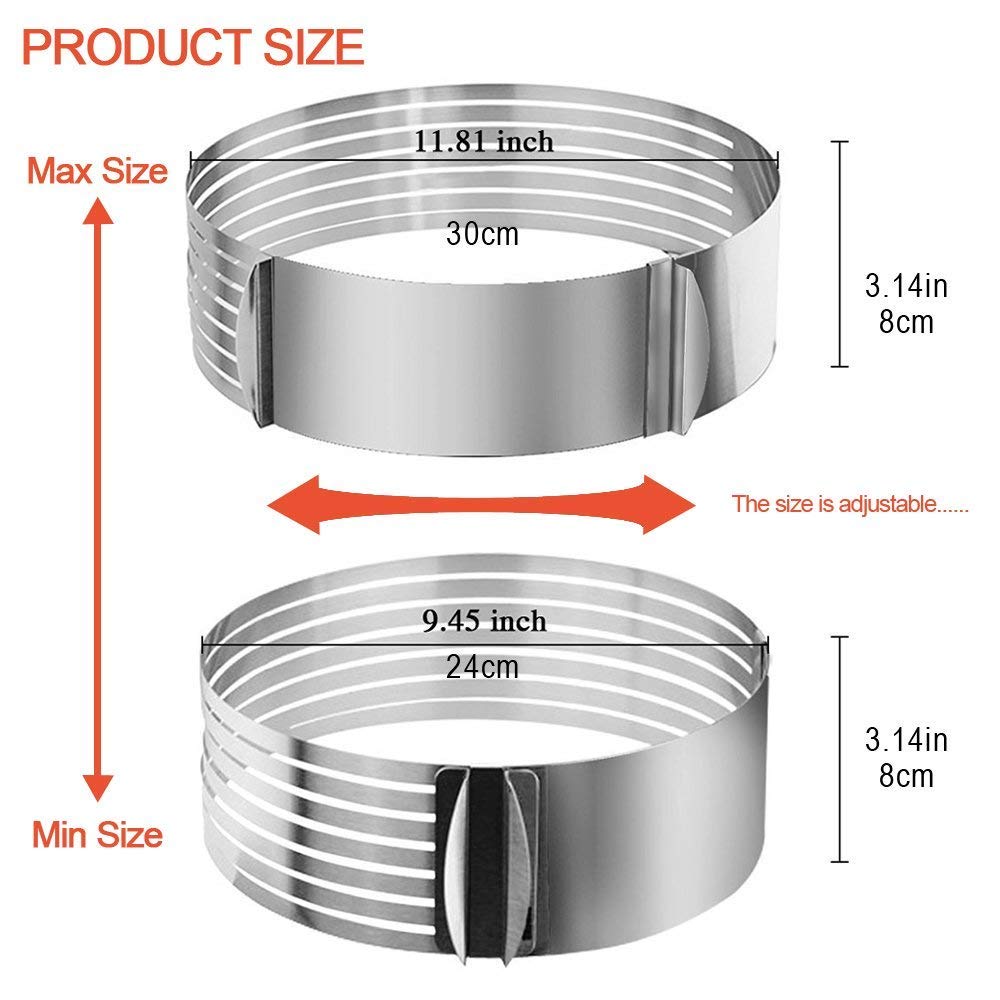 KALREDE Mousse Mould Layer Cake Slicer Cutter- Stainless Steel Cake Ring Round Baking Mold Adjustable 9" to 12" (Silver)
